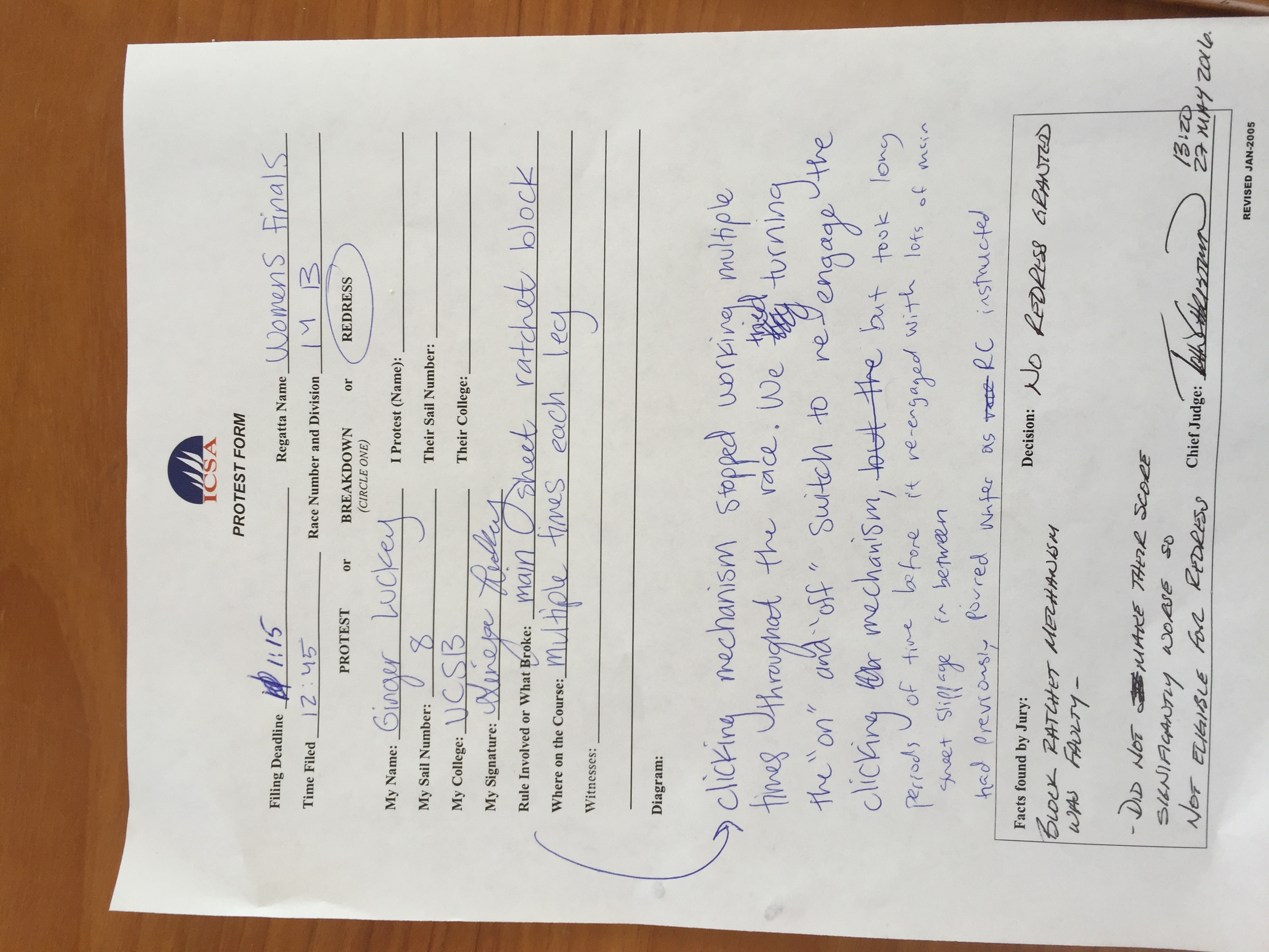 Request for redress by UCSB B div. denied