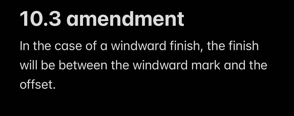 In the case of a windward finish, the finish will be between the windward mark and the offset. This changes SI 10.3.